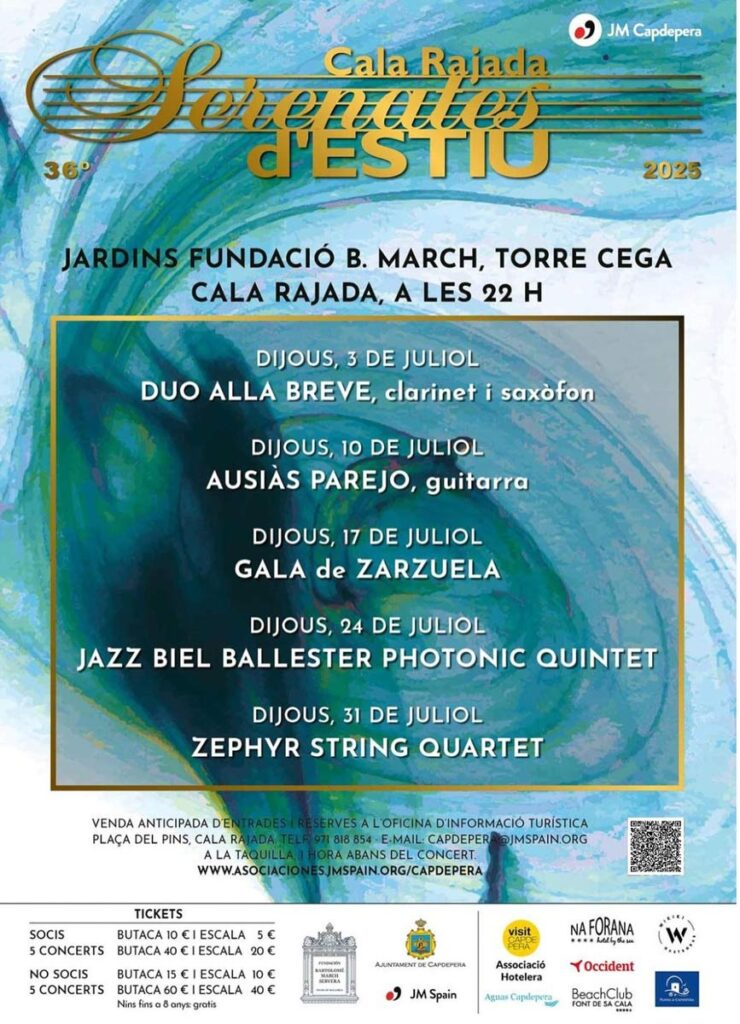 El ciclo, organizado por JM Capdepera con el apoyo del Ajuntament de Capdepera y diversas entidades colaboradoras, ofrece una programación variada y de alta calidad, que abarca desde la música clásica y el jazz hasta la zarzuela. Un total de cinco conciertos compondrán la propuesta cultural de este verano: