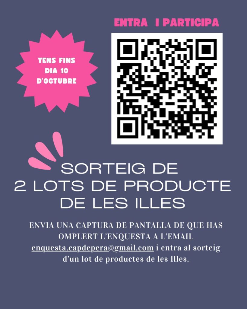 Para incentivar la participación, el Ayuntamiento sorteará dos lotes de productos de las Islas entre todas las personas que envíen al correo enquesta.capdepera@gmail.com una captura de pantalla confirmando que han completado la encuesta antes del próximo 10 de octubre.