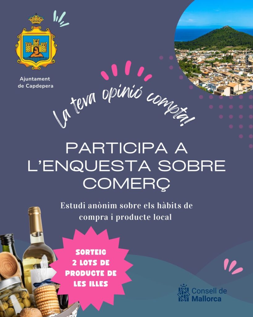 El Ayuntamiento de Capdepera ha puesto en marcha un proyecto para conocer los hábitos de consumo y las preferencias de los ciudadanos del municipio, con el objetivo de diseñar futuras campañas de promoción y concienciación que fomenten las compras en los comercios locales y el consumo de producto local y de proximidad.
