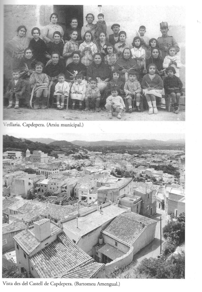 «La falta de terreno óptimo para cultivar reduce las condiciones de explotación agraria de la población, que, en cambio, se compensa con una diversificación de las actividades económicas muy superior a la que presentan los otros dos municipios del Pla, como la actividad marítima, la manufactura de productos de palma, el comercio o el contrabando activo entre 1880 y 1980. Es precisamente la existencia de actividades económicas complementarias (o alternativas) a la agricultura lo que genera una diferencia social más marcada de lo que aparece en Vilafranca. A pesar de ello, también en Capdepera la presencia de la gran propiedad domina el cuadro agrícola. De hecho, quienes ocupan una posición socioeconómica más acomodada son precisamente quienes están menos vinculados a actividades agrarias.