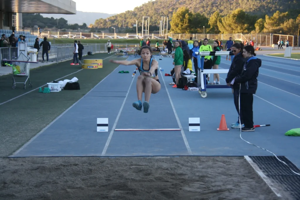 El viento no favorece igual que en las carreras, ya que la fase de vuelo cuando no hay contacto con en el suelo, el viento descontrola los movimientos. El mismo viento para Maria Servera en el salto de altura, que aún en esas condiciones mejoró su marca en 6 cm, haciéndose así con la plata (recordar que Maria acaba de aterrizar en la categoría Sub.16, fue su primera experiencia en categoría absoluta).