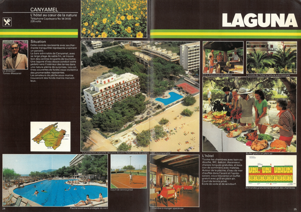 Desde su apertura, el Universal Hotel Laguna ha sido testigo directo de los cambios sociales, económicos y turísticos de Canyamel. Concebido inicialmente para ofrecer alojamiento de calidad a una clientela principalmente procedente de Suiza, el hotel se integró desde sus inicios en un entorno natural privilegiado, junto al mar, que sigue siendo uno de sus principales valores diferenciales.