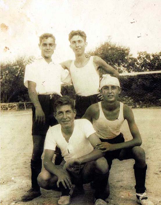 Foto 1: Cuatro jugadores gabellins de la temporada 1961-62: Lluciá “Castus”, T. Massanet, Toni “Tofol” y Paco Gambins.