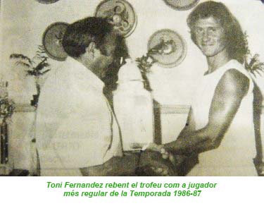 Foto 4: G. Soler de “Coexa” entrega a T. Fernández el trofeo al jugador más regular de la temporada 1986-87.