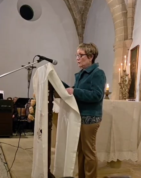 Ángela López inició su intervención explicando la sorpresa y el respeto con el que recibió la propuesta del párroco, Xisco Bernabéu, para ser la pregonera de este año. Reconoció que su primera reacción fue decir que no, no por falta de voluntad, sino por el miedo a no estar a la altura de lo que representa la Virgen de la Esperanza para Capdepera. Sin embargo, tras reflexionar, entendió el pregón como una oportunidad para dar las gracias, tanto al pueblo como a la Virgen, por todo lo que le han dado a lo largo de su vida.