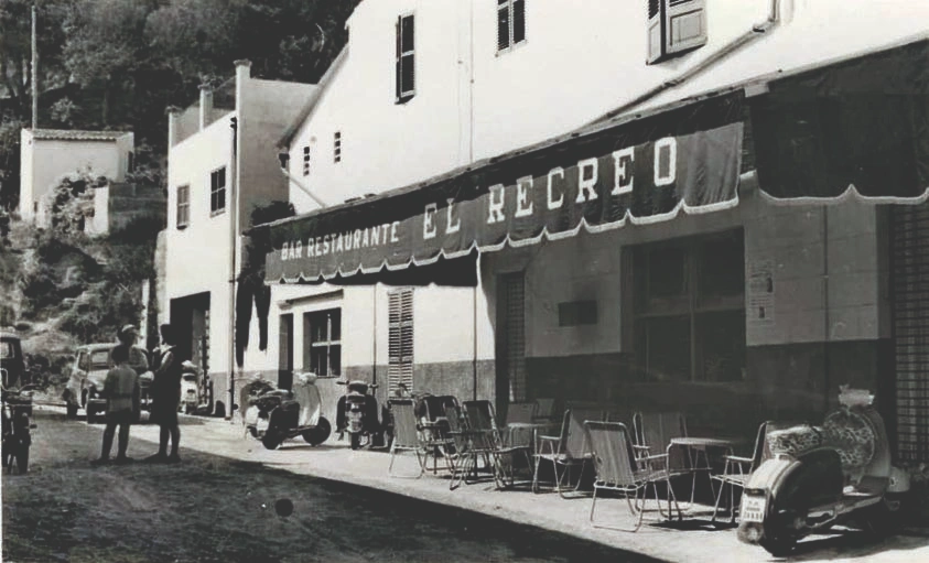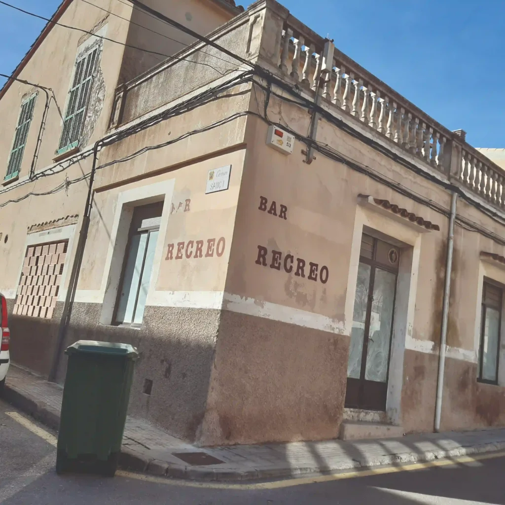 Porque, claro, la familia de Juan Flaquer Juan era propietaria, en la parte izquierda de la corta vía con un amplio salón que fue el tercer cinematógrafo “Cine Oriental o Teatre del Recreo (el 3 de marzo pasado, desde 1923, se cumplió el centenario), aunque la historia que nos habla de ello cuenta que la nave estaba terminada a punto de inaugurarse y que, por desavenencias entre los promotores, el local tardó 3 años en abrirse; un amplio espacio donde se efectuaron cine, variedades, bailes y fiestas populares. Con el tiempo, fue vendido a una empresa de construcción de pisos, donde se ubicó una papelería y una tienda de informática. En la parte derecha, siempre mirando hacia S’Alzinar, el matrimonio formado por el mencionado Juan Flaquer y Maria Lliteras, asimismo eran propietarios del bar El Recreo, buque insignia entre los cafés de la localidad.  En octubre de 1926, se abrió al público. La calle, entonces, era prácticamente suya y se la conocía con el mismo nombre del establecimiento.
