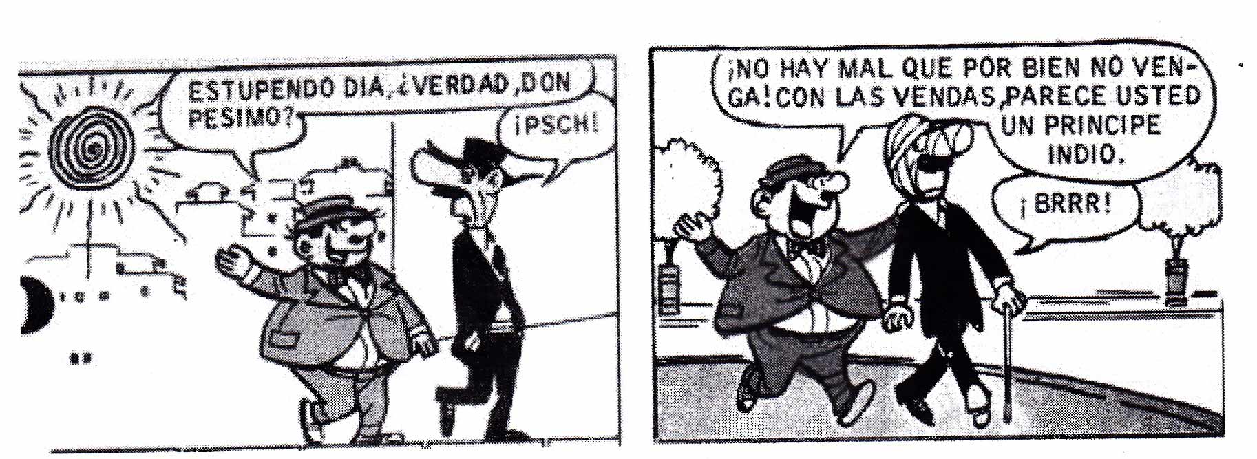 DEL T.B.O. Josep Escobar inventó, en los años 60 del pasado siglo, dos personajes de TBO: don Óptimo y don Pésimo. El primero era bajo de estatura, regordete, llevaba bigote y siempre estaba de buen humor. Don Pésimo, en cambio, era alto, espigado, siempre vestía de negro y estaba de perpetuo mal humor. Efectivamente, estos dos personajes no tuvieron mucha duración entre viñetas, a pesar de parecernos dos arquetipos como Don Quijote o Sancho Panza, o como el Gordo y el Flaco, los cuales perduran para siempre en nuestro imaginario. Transcurridos los años en que Pésimo y Óptimo desaparecieron de la escena, el estado actual de las cosas nos hace pensar que el segundo le ha ganado la batalla al primero. Si bien existe un campo en el cual Pésimo, contra todo pronóstico, se ha impuesto por completo a su compañero, el de nuestra percepción del mundo en el que vivimos. Se respira la sensación que todo va mal, pero lo curioso del caso es que pensamos que es don Óptimo quién tiene la razón en este asunto. Si lo analizamos, está claro que el mundo va mejorando en todos los aspectos, hay menos desigualdad, menos pobreza, menos violencia, menos analfabetismo, menos enfermedades mortales y un crecimiento educacional, esperanza de vida y libertades políticas. Sin embargo, muy pocos de nosotros, estaríamos dispuestos a aceptar que así es. ¿Verdad?