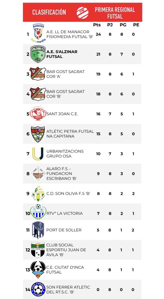 El equipo está muy bien, ahora mismo estamos segundos a tres puntos del líder. Han pasado ocho jornadas desde el inicio de liga. Perdimos la primera jornada fuera de casa contra el Bar Gost A, que es uno de los mejores equipos de la categoría, y después hemos encadenado siete victorias consecutivas que han hecho que estemos arriba de la clasificación y luchando por el liderazgo. El próximo partido jugamos contra el líder el Fisiomedia Manacor en casa el primer clasificado contra el segundo.