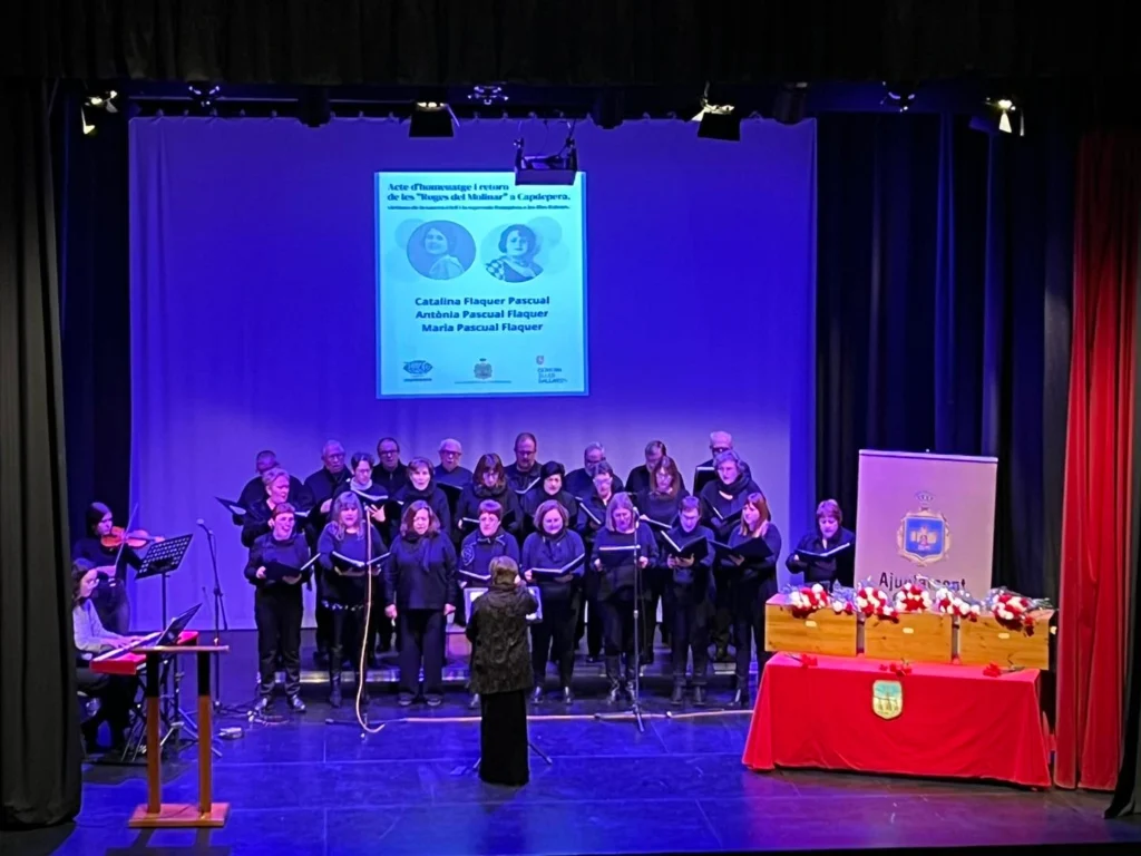 Hubo palabras de recuerdo y honra en su nombre, así como solidaridad con las familias. El Teatre de Capdepera fue el lugar escogido para la celebración del acto, al que asistieron entre muchos otros, la presidenta del Govern de les Illes Balears, Francina Armengol, el secretari autonòmic de Sectors Productius i Memòria Democràtica, Jesús Juan Jurado; el alcalde, Rafel Fernández; el director general de Memòria Democràtica, Marc Andreu Herrera, i la presidenta de l’Associació Memòria de Mallorca, Maria Antònia Oliver.