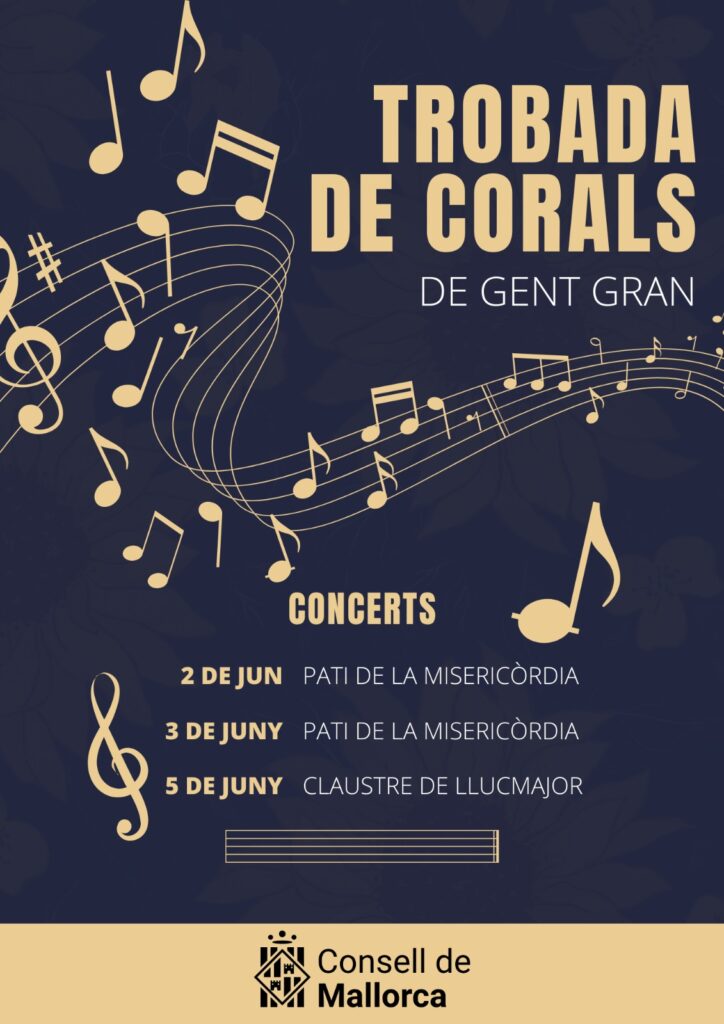 Añadir, para conocimiento de los melómanos, que los días 2 y 3 tendrá lugar en el patio de la Misericordia de Palma otra “Trobada” que reunirá a la Hermandad de Veteranos de la Guardia Civil, la asociación de alumnos de la Universitat Oberta de Majors, y las corales de la Gent Gran de Son Dameto, Es Jonquet, Nostàlgics y “Som d’Aquí” (Son Fortesa), entre otras formaciones.