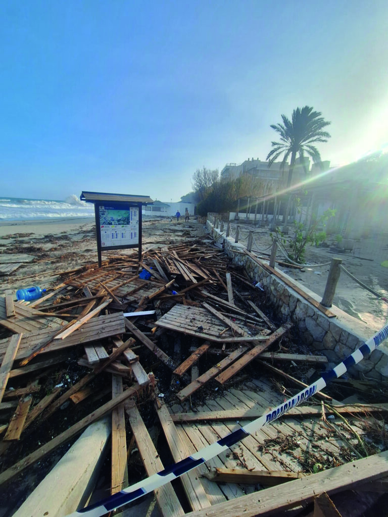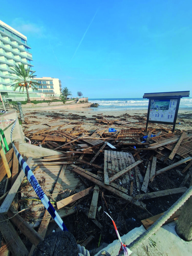La situación ha sido mucho más grave en Son Moll, donde el temporal ha causado importantes destrozos. “Se ha llevado por delante toda la pasarela de acceso, incluida la destinada a personas con movilidad reducida, así como la rampa, la cartelería y parte de la terraza del chiringuito, que es de hormigón y ha quedado completamente levantada”, ha explicado el regidor. Además, la caseta de los socorristas ha resultado gravemente dañada, al igual que los baños públicos, y se está valorando si algunos de estos elementos pueden ser recuperados o deberán ser sustituidos.