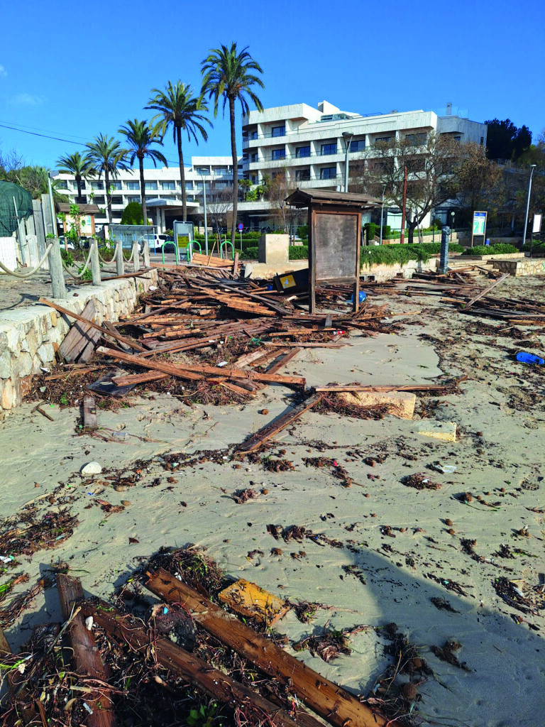 Una vez superada la fase más urgente, el Ayuntamiento deberá elaborar los informes técnicos correspondientes para evaluar los daños y determinar qué actuaciones asumirán el seguro, cuáles corresponderán al consistorio, cuáles a la concesionaria de playas y cuáles al contrato de salvamento, especialmente en lo relativo a la caseta y a las torres de vigilancia de Son Moll, que han quedado dañadas y deberán ser recolocadas y aseguradas.