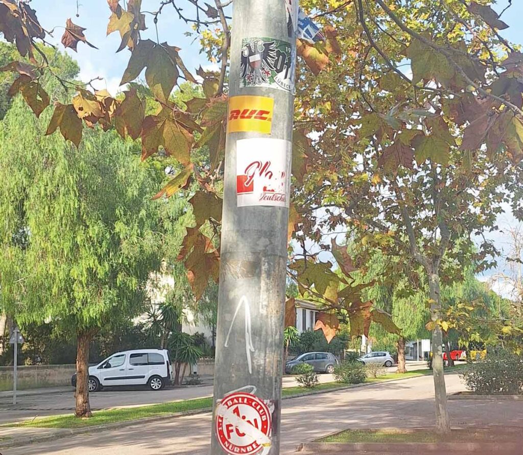 Aparte de pintadas un tanto obscenas, también me da pena cómo el “turismo cultural” se dedica, no a pintar, pero sí a poner pegatinas donde más les da la gana. Estos “artistas”, tanto pintores de una clase u otra, seguro que “trabajan” en el anonimato y al amparo de la noche, que es cuando la población está en sus respectivos hogares, para que nadie observe las obras, que son una indecencia.
