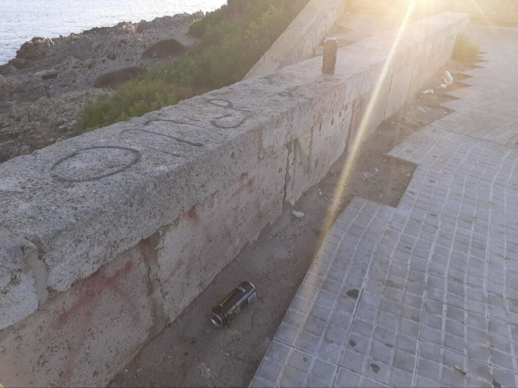 “Esto es en el mirador de Cala Provençals. Cada mañana sé lo que han estado tomando y comiendo la gente que va por las noches. A lo mejor habría que pasar para explicarles que igual que se lo han traído, que se lo lleven, que hay como cinco familias de contenedores antes de llegar al Carolina. O habría que darles clases de civismo a nuestros jóvenes o simplemente poner una papelera… ahí lo dejo…”