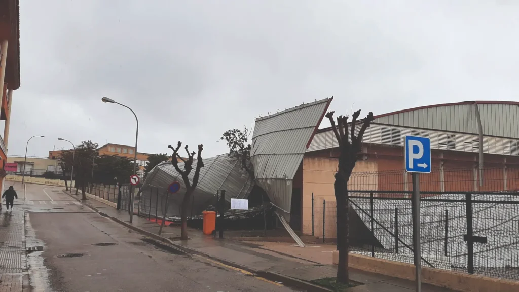 ¿Y por qué explicamos todo ésto? Porque ahora es cuando detallaremos qué causó que se levantara el techo del polideportivo de Es Figueral.