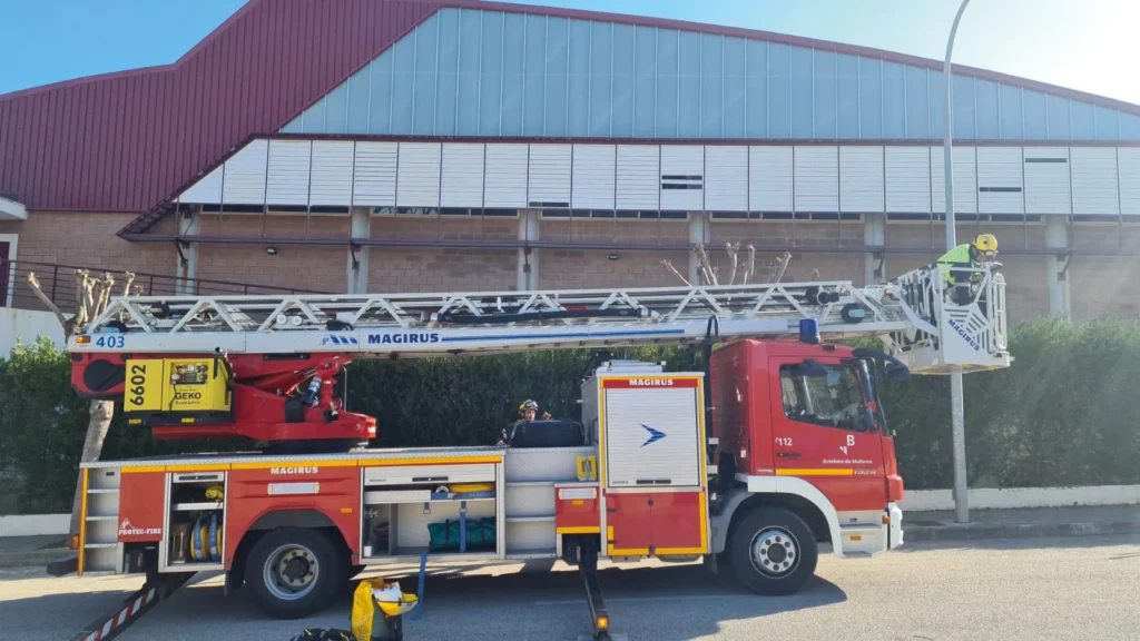 Desde el mismo martes, operarios de la brigada municipal junto a una dotación de Bombers de Mallorca se encargaron de quitar las planchas que había todavía en la cubierta para que así no quedaran sueltas y pudieran después caer al suelo.
