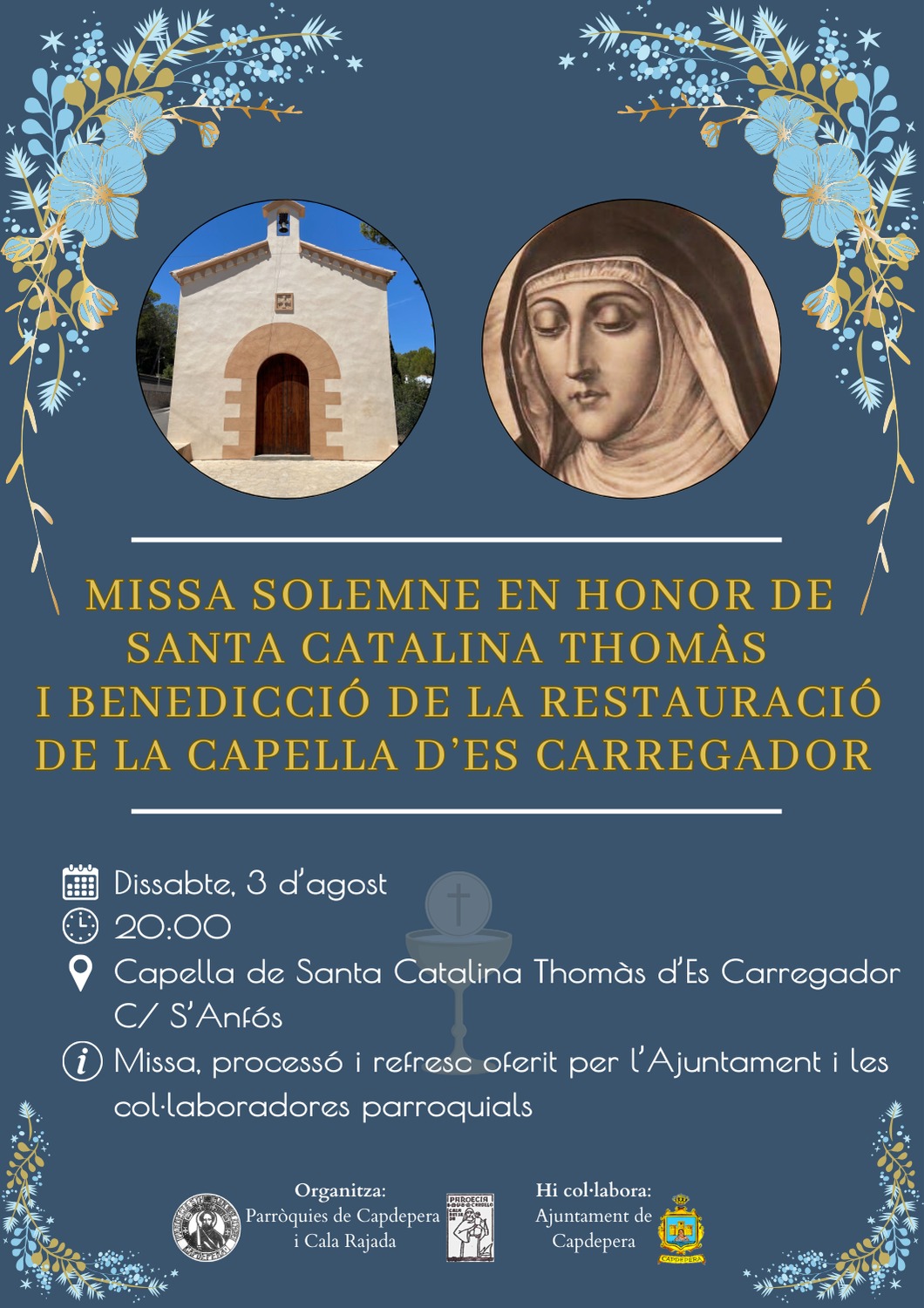 Con motivo de la próxima reapertura de la capilla de Santa Catalina Thomás en Es Carregador, se ha realizado una traducción al español de un breve artículo escrito por Joan Alzina Melis, publicado originalmente por Miguel Flaquer. Este artículo, leído en la Academia de la Llengua Catalana el 27 de febrero de 1901, fue publicado en julio del mismo año en la revista Montserrat, órgano de la Lliga Espiritual de la Mare de Déu de Montserrat, ambas fundadas por Monseñor José Torras y Bages, promotor de un catalanismo regionalista y católico. La traducción fue realizada por tres personas que han decidido permanecer anónimas.