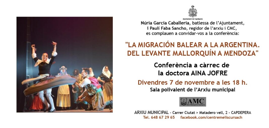 Este viernes, 7 de noviembre, la doctora Aina Jofre ofrecerá en el Arxiu Municipal de Capdepera una conferencia bajo el título «La migración balear a la Argentina. Del Levante mallorquín a Mendoza». La cita, programada para las 18 h en la sala polivalente del archivo, es mucho más que una charla sobre emigración: es también el retorno emocional de quien ha construido durante décadas un fuerte vínculo con Capdepera, con Cala Rajada y con la isla en general.