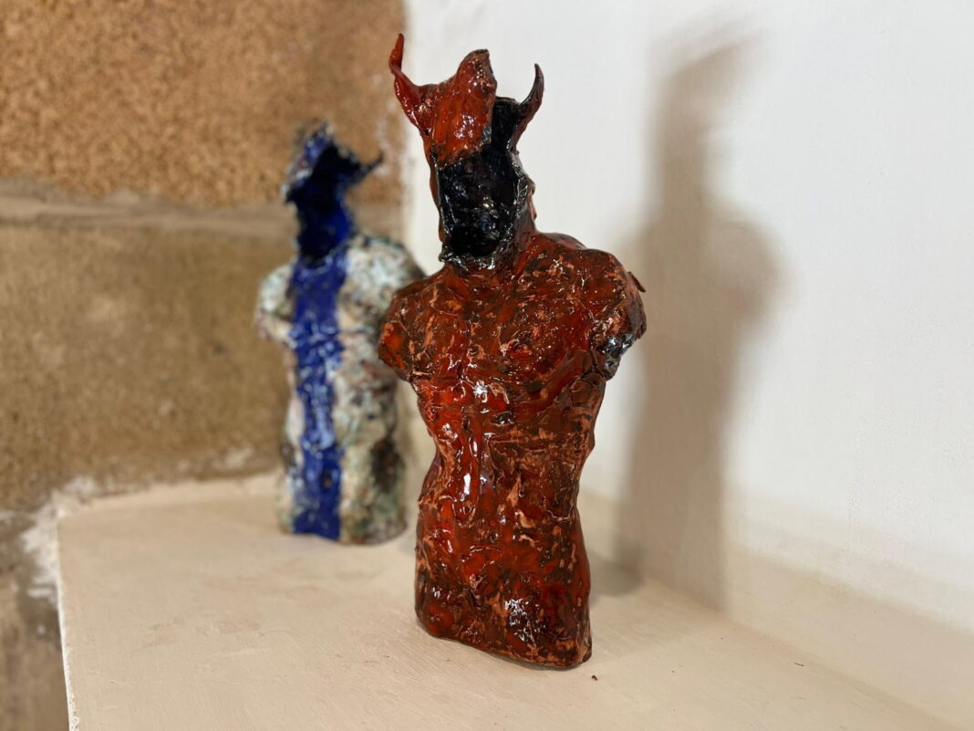 Las figuras de Ernesto Rodríguez destacan por su carga expresiva. Aunque trabajadas con técnicas de cerámica tradicionales, se articulan con una libertad formal que explora la tensión entre la fragilidad del barro y la fuerza de las emociones humanas. Su obra busca conectar al espectador con las capas más internas del ser humano, mostrando cuerpos como armaduras rotas, ensambladas, vulnerables… pero con una poderosa carga simbólica de sanación y transformación.