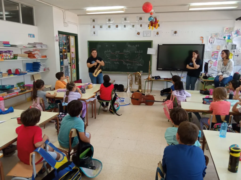 Justo antes de marchar de vacaciones dejamos planificados los principales objetivos para el curso 2023-2024. En primer lugar, nos gustaría incrementar la presencia de la escuela de música en el municipio para llegar a un mayor abanico de población: estamos trabajando para ampliar la oferta en el programa de teatro musical a partir de los 6 años, y cómo novedad especial podremos en marcha una rueda de instrumentos para alumnado entre 6 y 7 años dónde durante todo el curso podrán probar diferentes especialidades que se ofrecen en el centro con el objetivo que conozcan mejor las familias instrumentales. Por otra parte, y desde hace unos años, se está impartiendo un programa de música y comunidad con el alumnado de 3º y 4º de primaria del CEIP S’Alzinar. Nos gustaría ampliarlo a otros niveles y centros del municipio. Aunque seguramente no será posible para el próximo curso trabajaremos para que sea una realidad a la mayor brevedad posible.